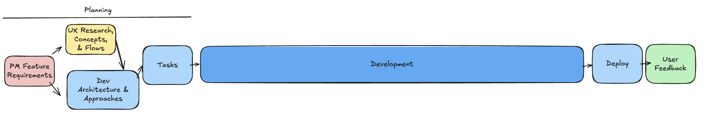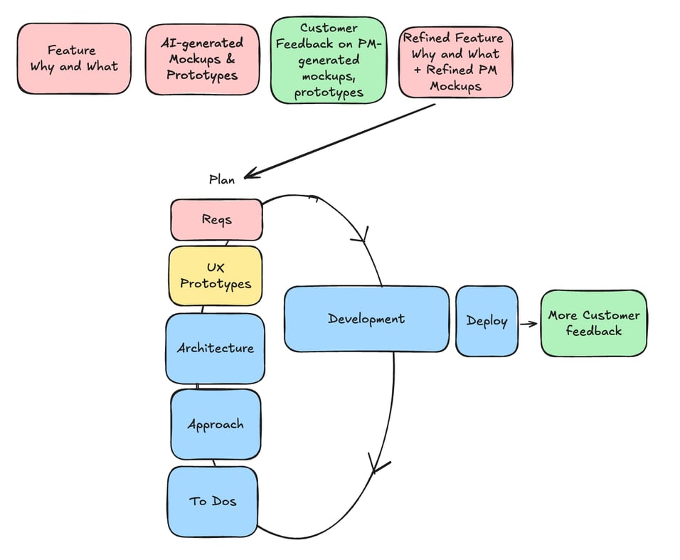 I've been interviewing many engineering and PM leaders about this dynamic. Some have said their AI-first teams are following standard process and are frustrated. Others have thrown process to the wind and are following a process like this:
