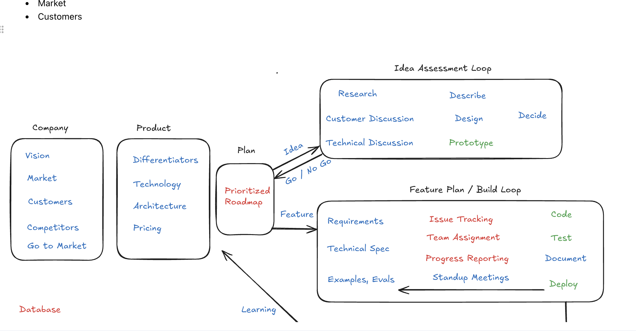 In this example, we are looking to understand the steps a feature team goes through to build a product feature. We begin by typing some bullets.