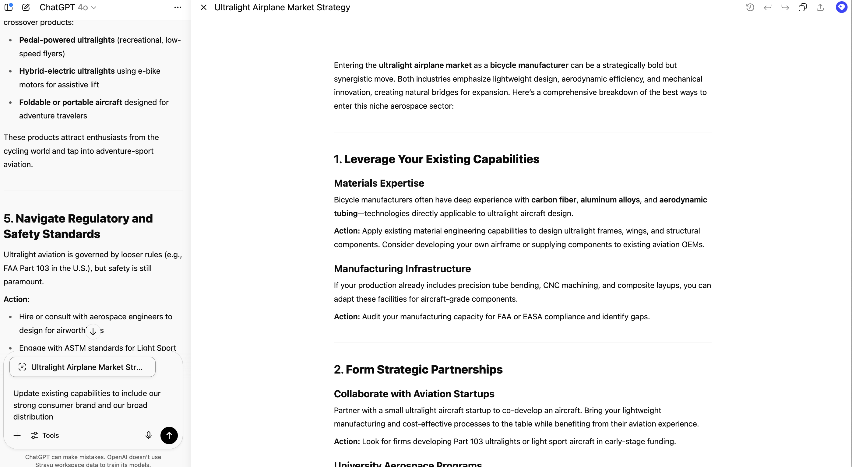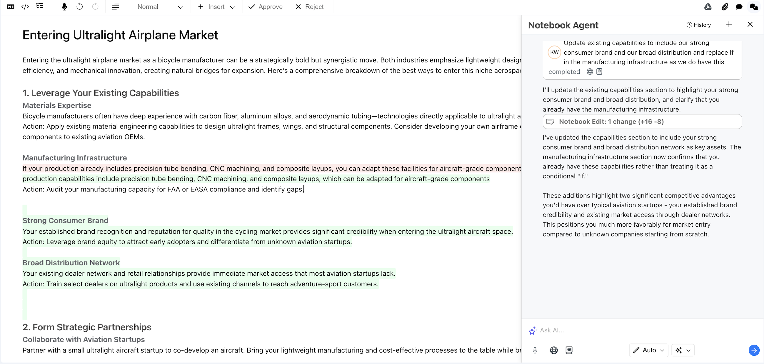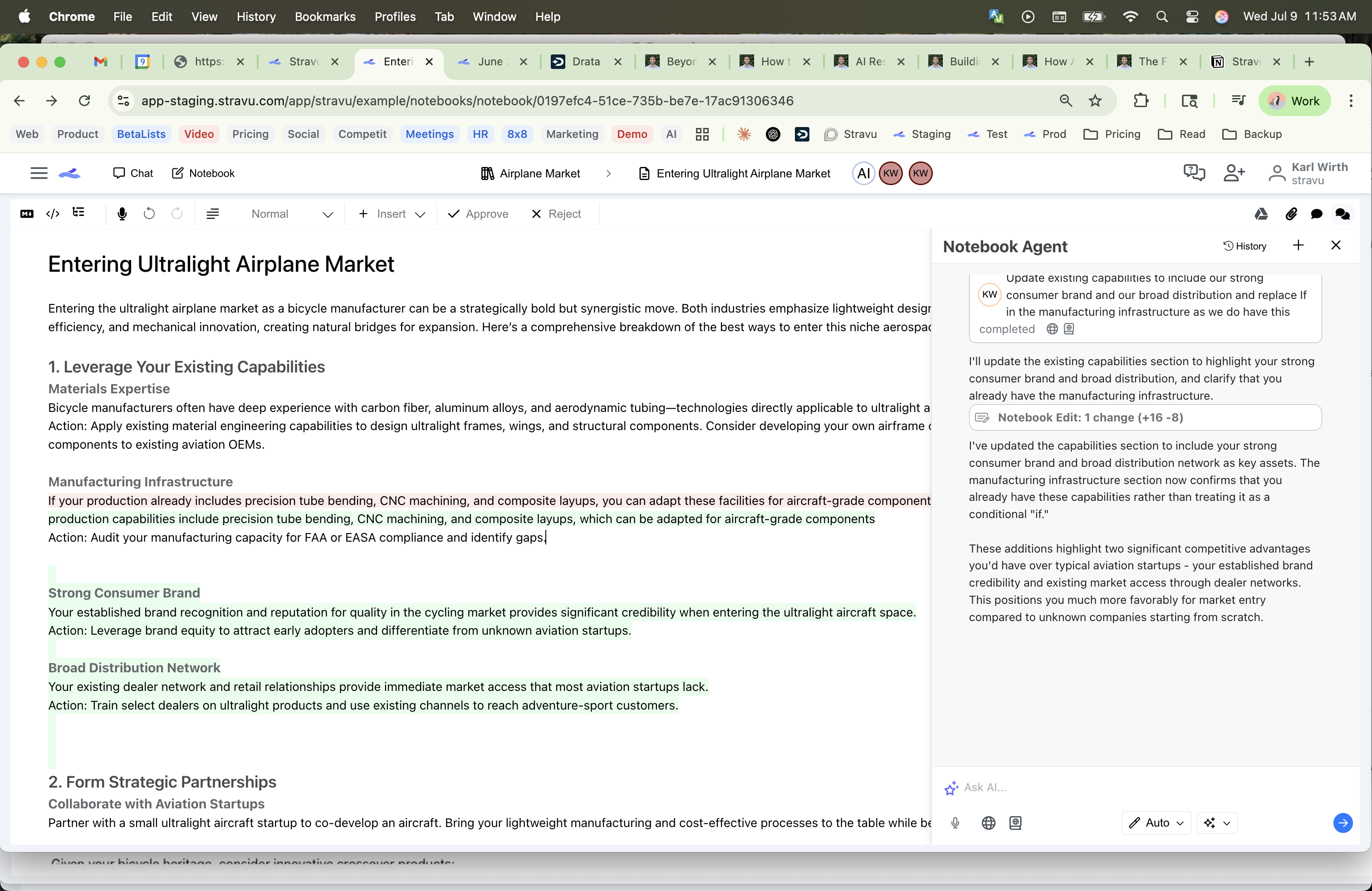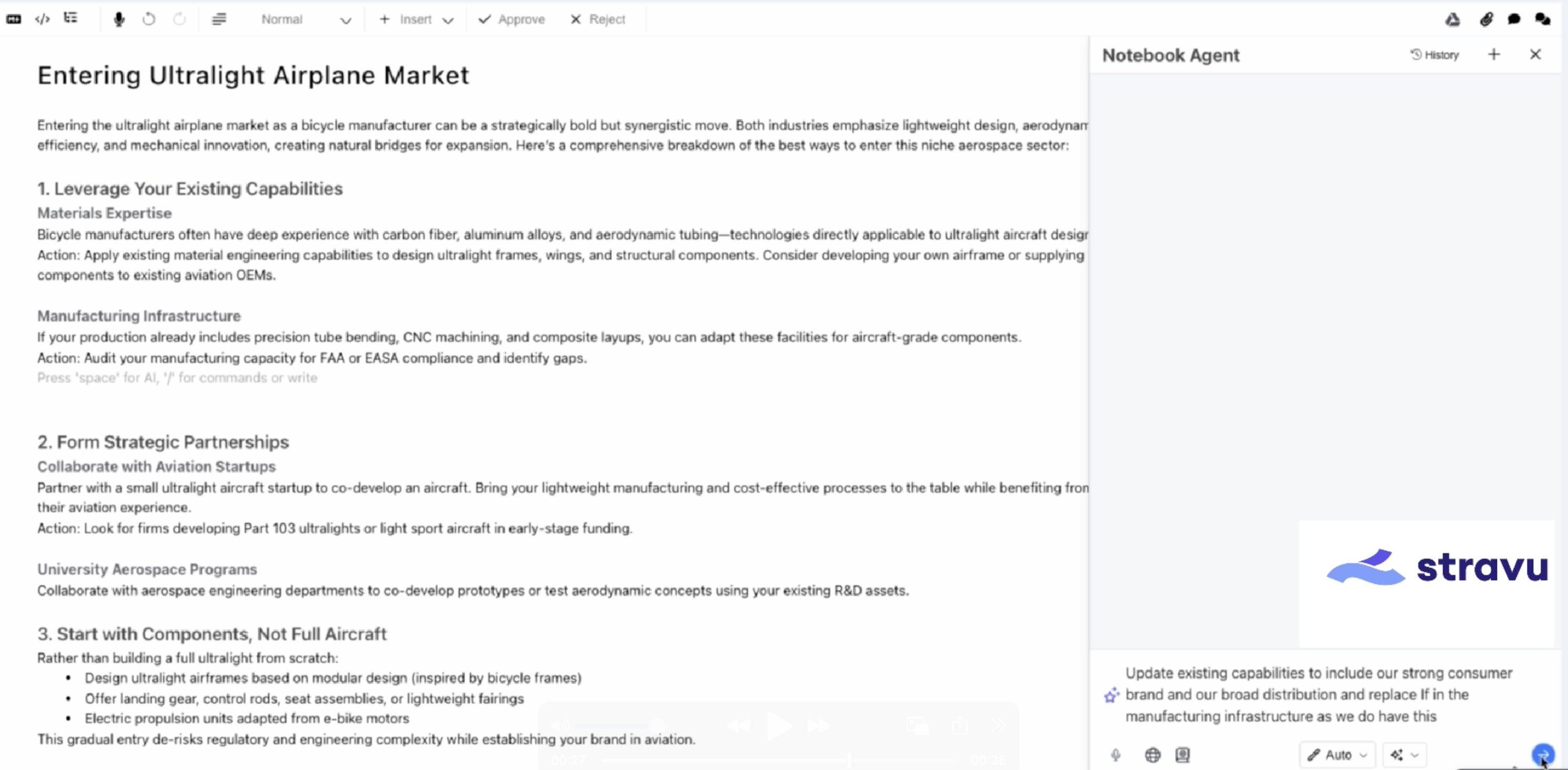 And, Stravu lets you connect that edited content to your AI for ongoing work and context. Its the best of both worlds. The power of AI and your ability to directly work and edit your content.